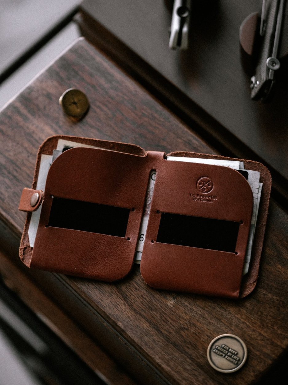 ENG Made from a single piece of genuine leather, no seams, no linings to fall apart, no complications. It only has a simple side clasp that will allow you to access its contents in a quick and stylish way. Otherwise; fold it, spread it, close it, open it, use it freely like no other wallet.